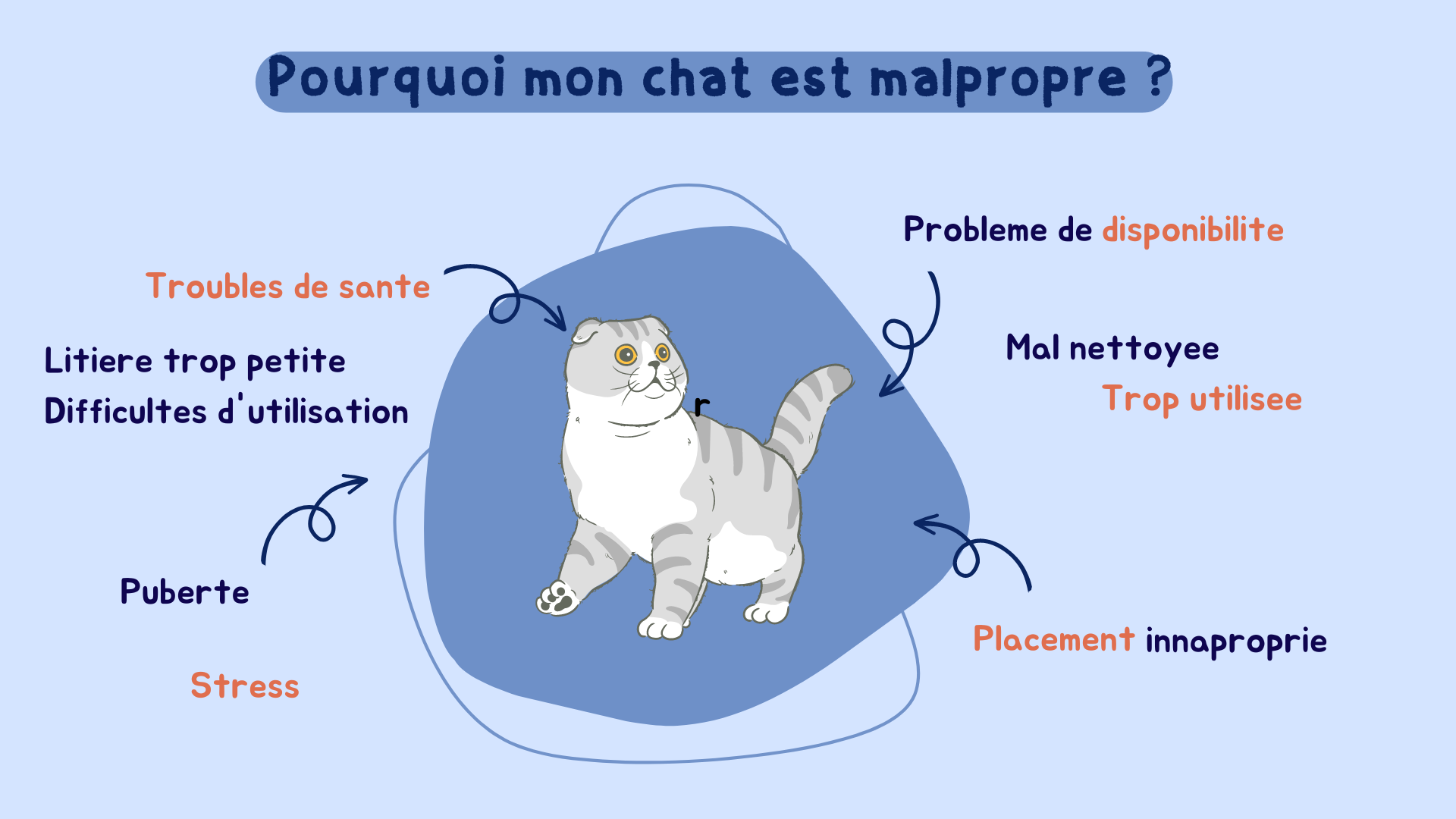 Le chat est maniaque, une litière mal nettoyée l'encourage à faire ses besoins en dehors de sa caisse.