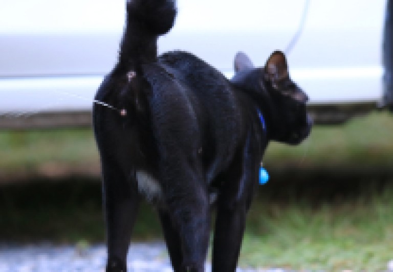 Le chat urine en position accroupie, parfois debout mais dans ce cas la queue est immobile.