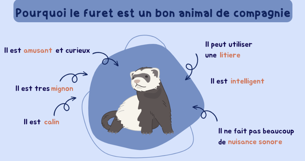 • temps et attention : le furet a besoin de beaucoup d'attention, si votre emploi du temps est très chargé, ce n'est peut être pas le meilleur animal pour votre mode de vie,