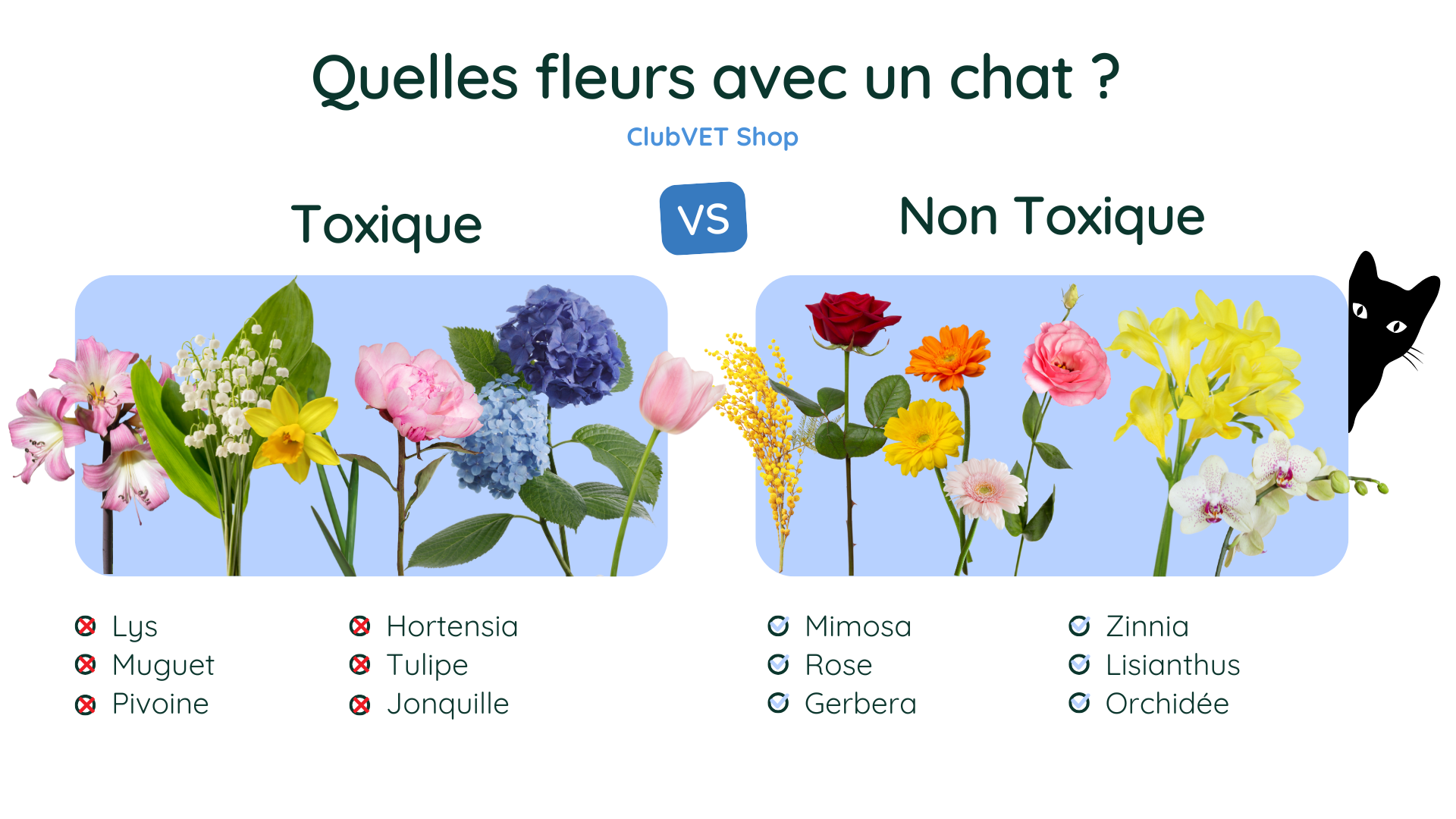 • Soyez vigilant aux bouquets de fleurs qui peuvent contenir des lys, des tulipes ou des jonquilles, souvent toxiques. Sensibilisez vos proches qui seraient susceptibles de vous offrir des fleurs. D'autant qu'après cette lecture, vous avez compris que les plantes saisonnières que l'on a tendance à offrir sont dans la liste des plantes les plus toxiques...