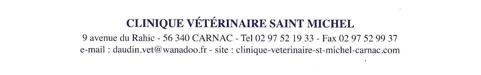 Bonjour, ce mail pour vous informer du décès de mon petit chien VANI (pas naturel) et pour remercier le Dr Legrand pour sa gentillesse et la sympathie de toute votre équipe. Cordialement