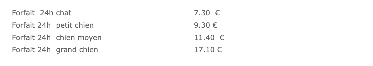 - Nos services à la journée incluent les sorties en laisse et les repas (si alimentation physiologique).