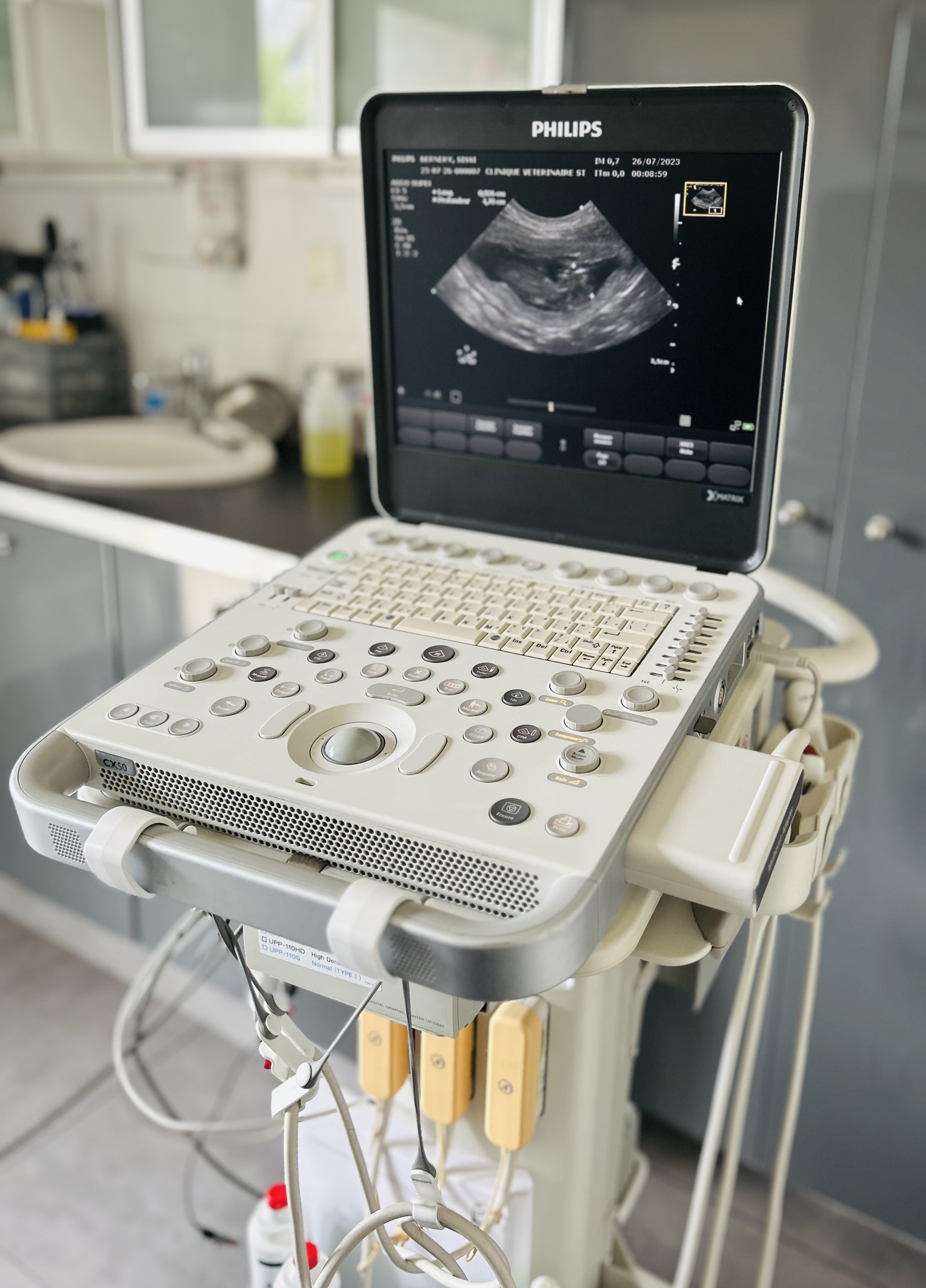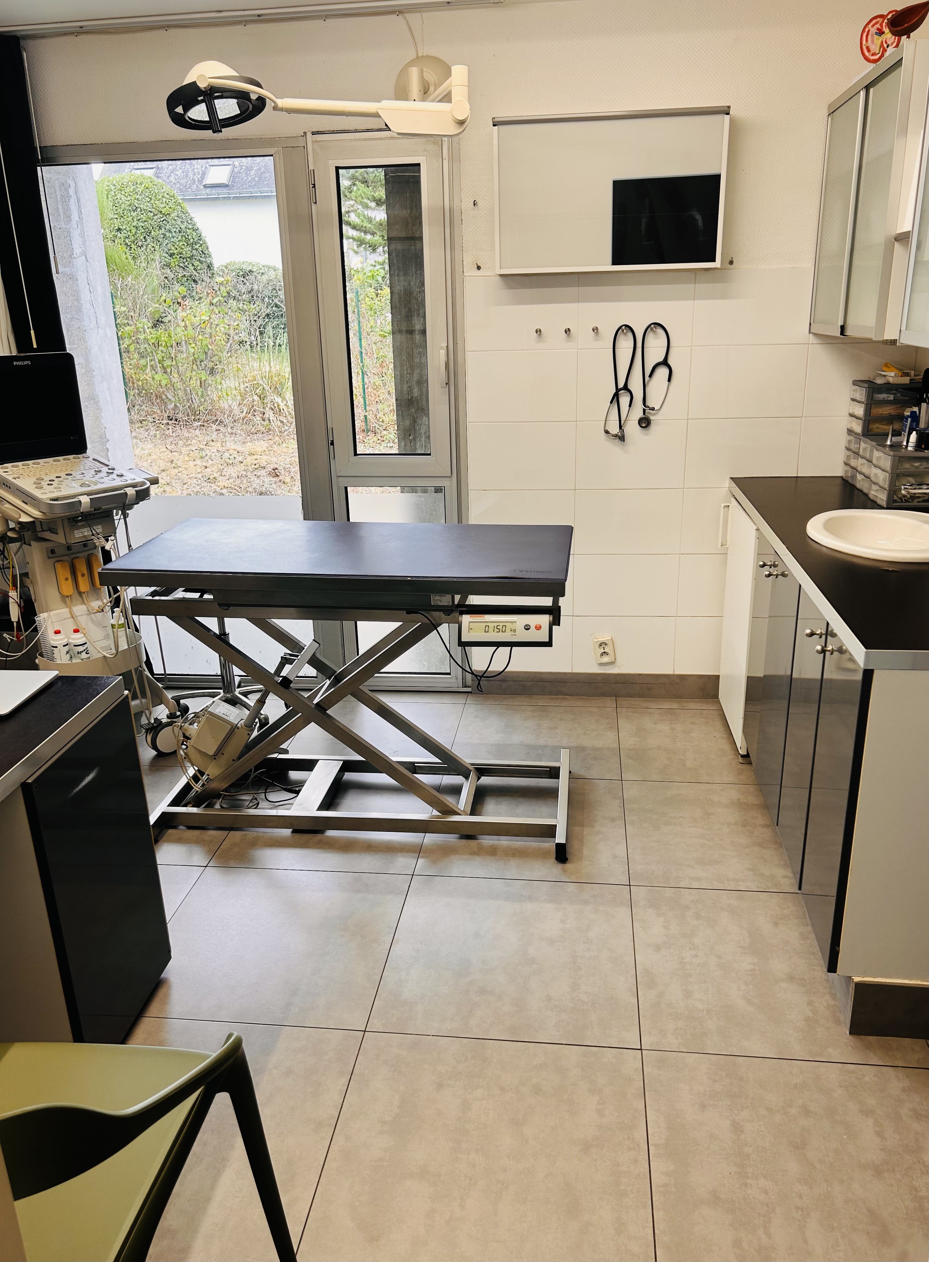 Nos salles de consultations et d'échographie sont toutes équipées de tables électriques vous évitant d'avoir à soulever votre animal pour l'examen.
